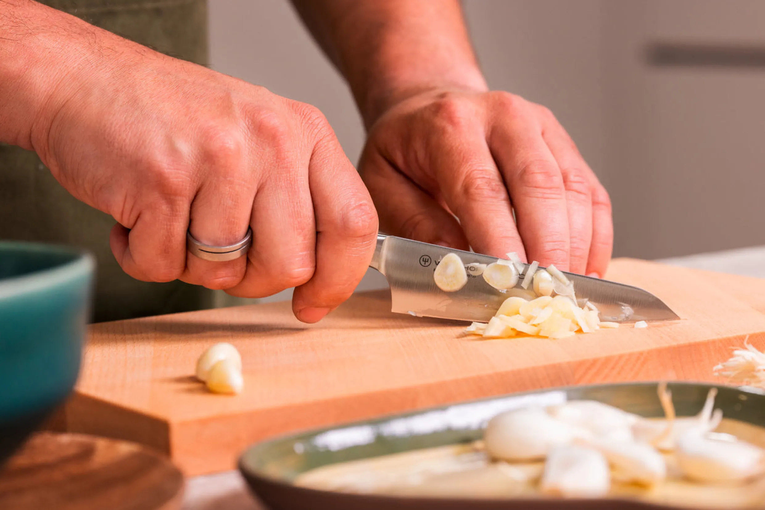 - Avoid cutting on hard surfaces such as metal, glass or hardwoods like bamboo.